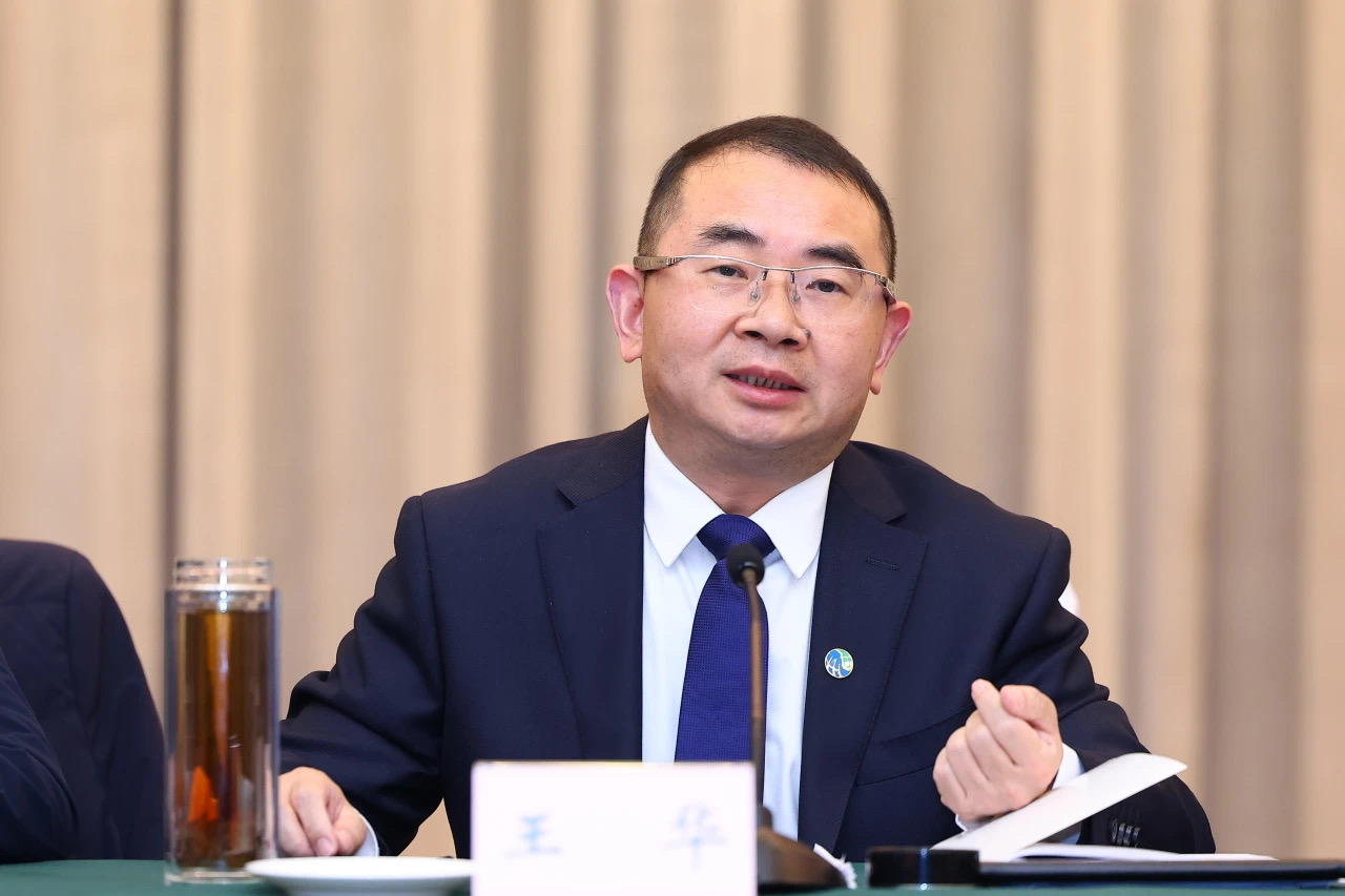 集團黨委書記、董事長王華向參會嘉賓介紹集團科技創新工作-1